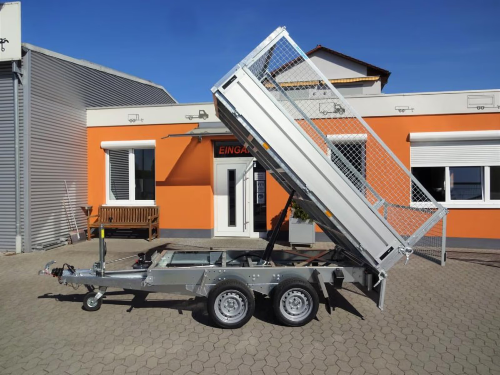 • Kipperoberbrücke massiv verschweißt u. verzinkt; Einhängevorrichtung für Auffahrrampen am Heck;